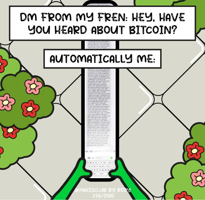 - Creative stories that make jokes even about the topics they're teaching us—like Bitcoin. How many of you can relate to what Maxis Club is showing us here?