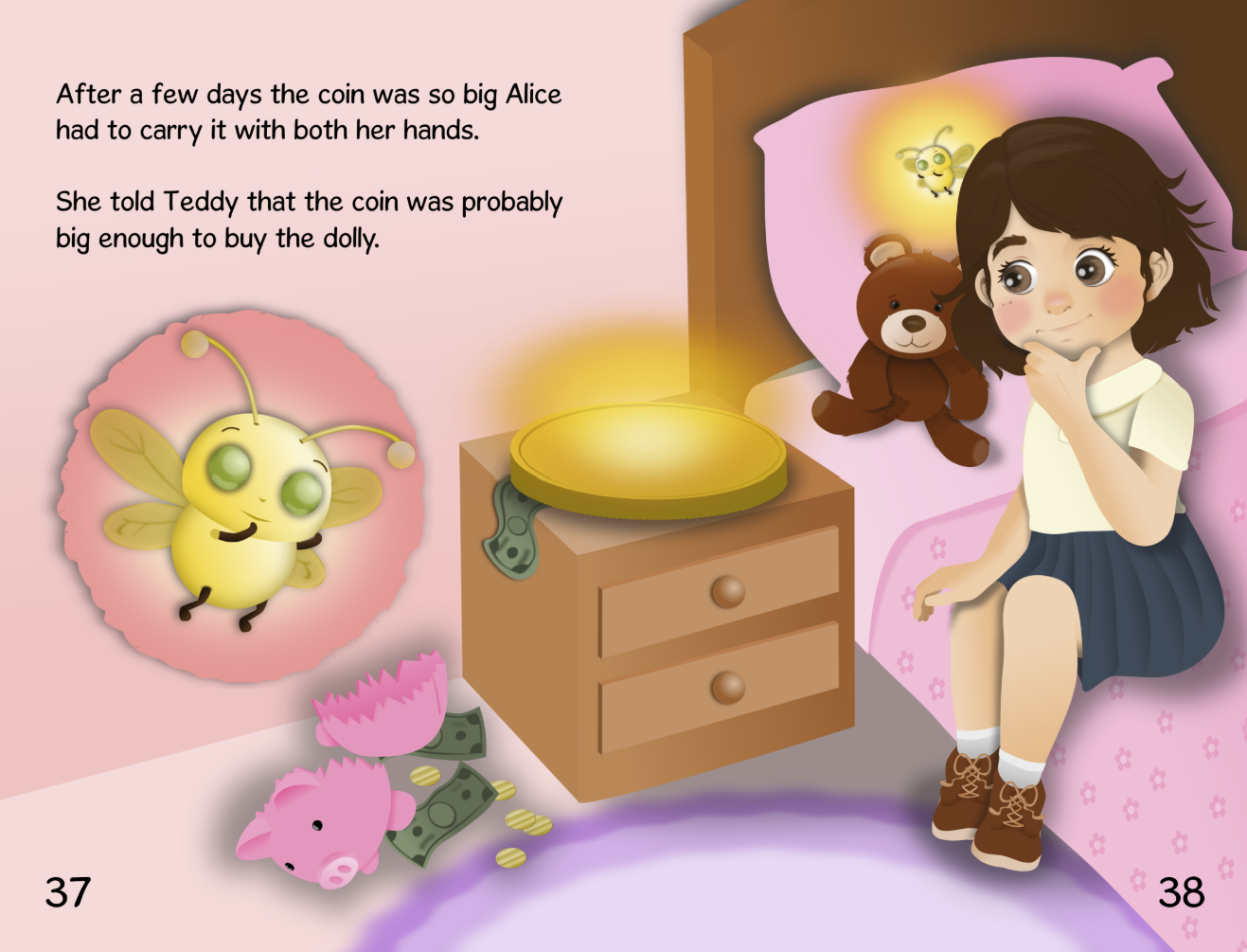 A delightful story about a little girl named Alice who dreams of getting a new doll. She works hard to earn it, experiences how her money loses value, and, with the help of a boy named Bob, eventually discovers a magic coin.